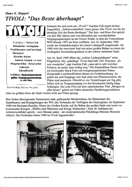 "TIVOLI - Das Beste überhaupt" - von Hans E. Happel (www.massenmedien.de/kino/bremerhaven/tivoli.htm)