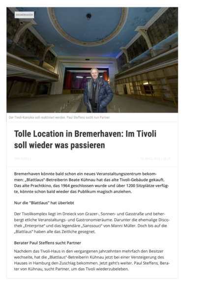 "Tolle Location in Bremerhaven - Im TIVOLI soll wieder etwas passieren" (Nord24 12.03.2018)